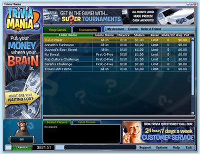 TriviaMania.com is your home for fast trivia action. State-of-the-art graphics and sound deliver an unforgettable entertainment experience. There are two game styles to choose from: